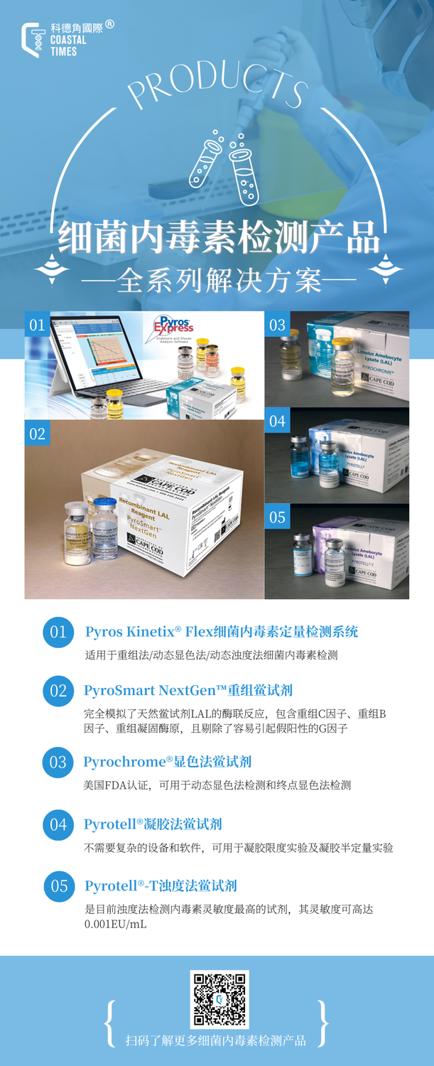配合该检测系统,科德角国际还推出了全面升级的鲎试剂系列产品,包括: